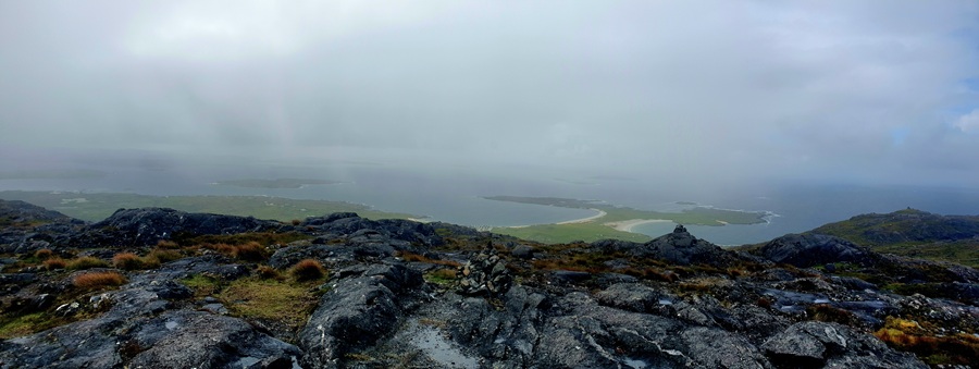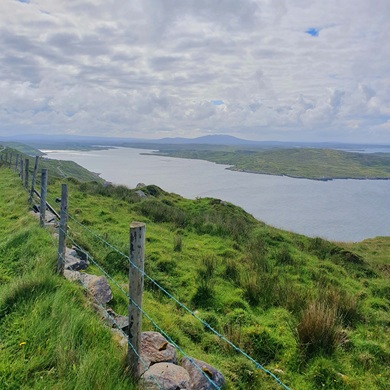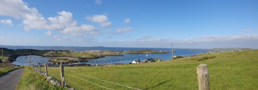 Entre 2 coups de vent un créneau se présente pour rejoindre de nuit le nord des îles d'Aran. Cela tombe assez bien car la vrai nuit ne dure que 3 ou 4 heures à cette époque de l'année (fin mai). Le mouillage de Roundstone nous offre un abri parfait pour le vent de nord qui va soufler ces prochains jours. Attention au seuil à l'entrée du mouillage ! Magnifique randonnée sur Errisbeg d'où la vue à 360 permet d'admirer le Maumeen Lough, les Twelve bens et bien sûr le mouillage.