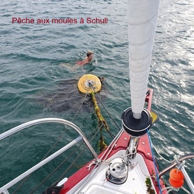 Nous n'avons sorti notre ancre que 3 fois grâce aux nombreuses bouées visiteurs, gros cylindres jaunes marqués "Maxi 15 T". Pas toujours au meilleurs endroits ; il faudrait parfois aller mouiller plus au fond du fjord pour être bien à l’abri du clapot dans les vents forts. L' Apli Navilly est bien utile pour les mouillages et ports, nous avons contribué de notre mieux.
