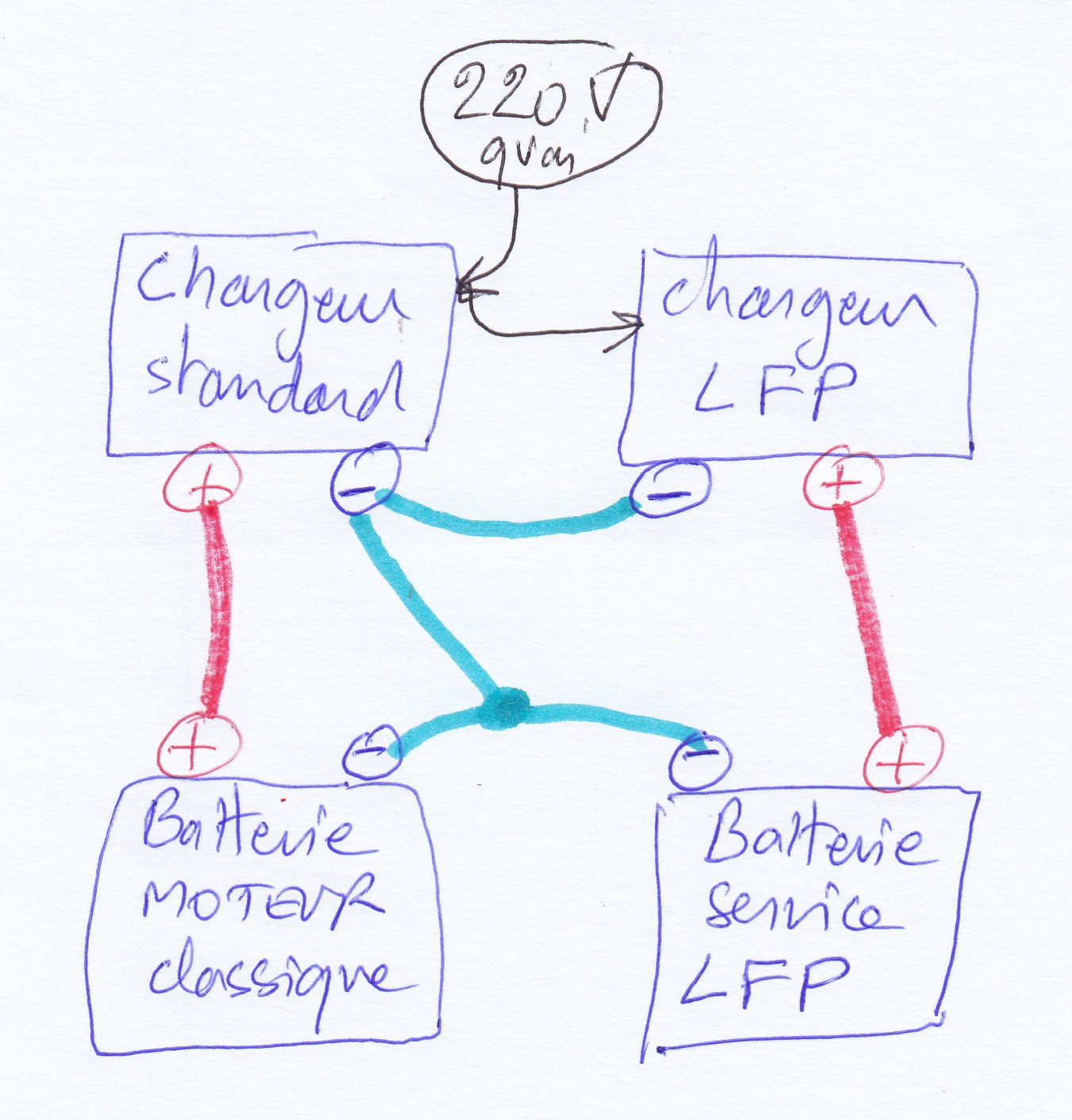 1°) J’ai cru comprendre qu’il fallait obligatoirement 2 chargeurs à quai (220V) différents, si on a une batterie moteur classique ET une batterie service LFP.