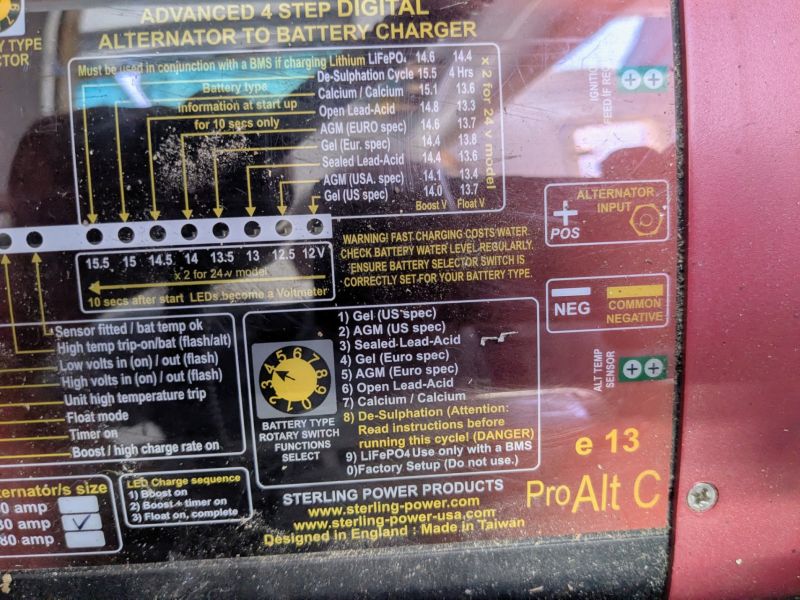 J’ai par ailleurs un booster d’alternateur de marque Sterling pour lequel il est signifié qu’on peut changer le type de batterie utilisée. Je vois bien le curseur positionné sur 3 en façade (pour les batteries gel) et il faudrait passer sur la position 9 pour les Lithium. Seulement voila je ne trouve pas de bouton de réglage. Sur la doc du Starling il parle du bouton 6 mais cela correspond au curseur et il n’y a pas de cran perceptible. Je crois qu’un des présents de l’AG avait cette configuration et il devrait pouvoir m’aider.