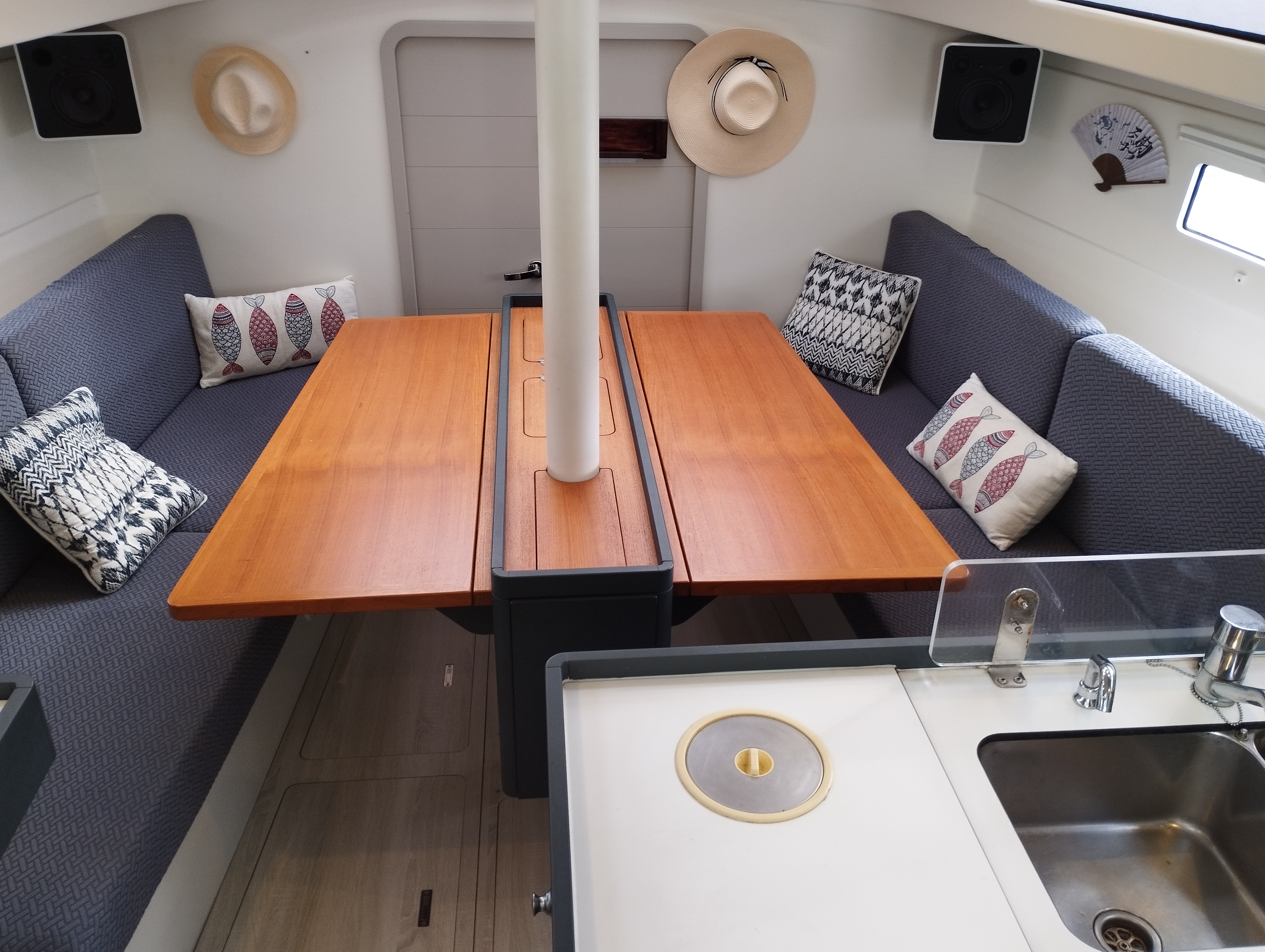 MISTY, RM 1070 jamais loué, nous a offert un tour de Méditerranée sur plusieurs saisons, à raison de 2 mois de navigation chaque année et mise à terre le reste du temps en chantier. Cause double emploi nous devons nous en séparer à regret. Le bateau est en très bon état (structure, gréement, voiles et moteur), il est entretenu très régulièrement et va bénéficier d’un léger polissage complet coque et pont très prochainement.